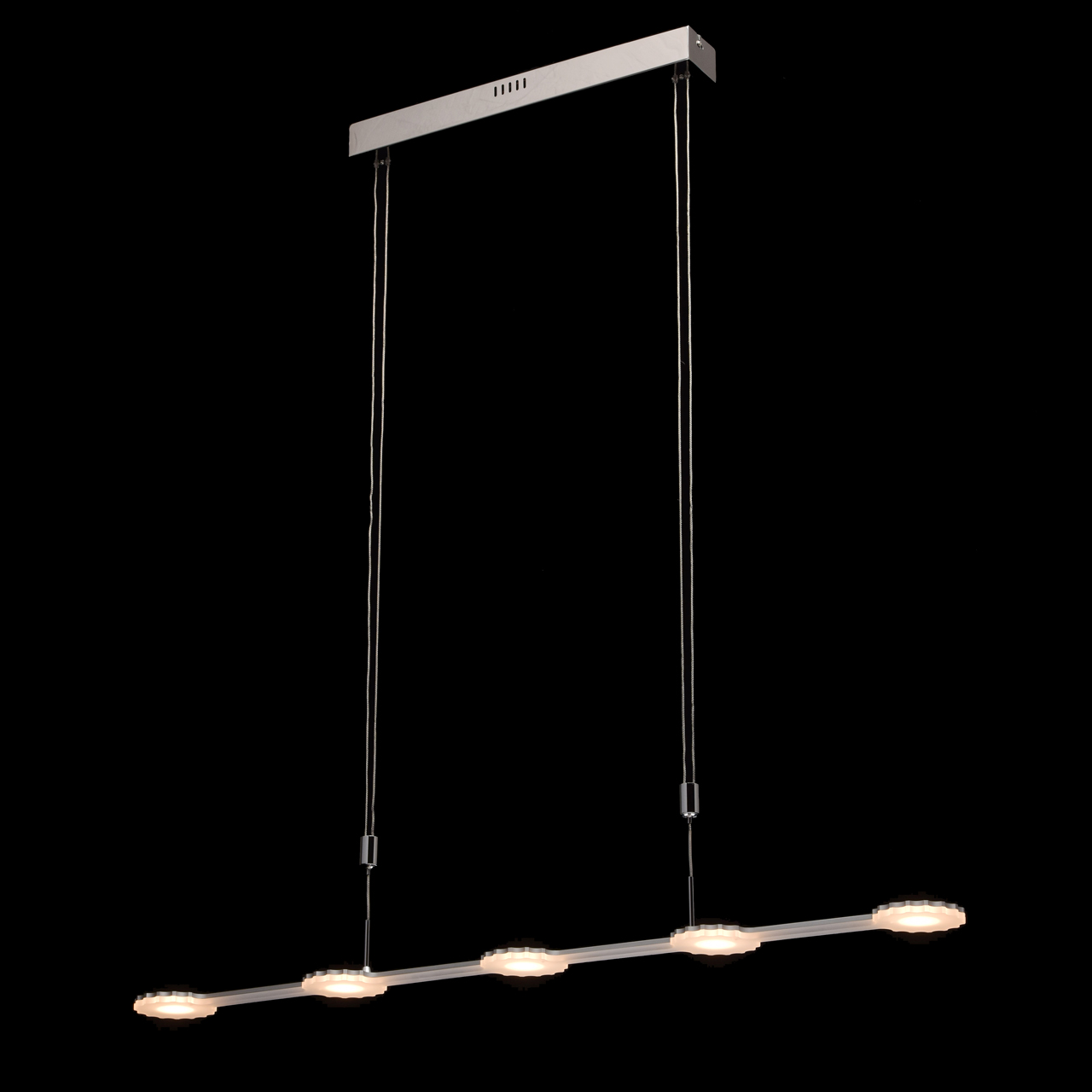 Современная люстра выполненная в популярном минималистичном дизайнеЕсть возможность регулировать высоту подвесаСветильник оснащен экономичными и долговечными светодиПрекрасный вариант для зонального освещения обеденной зоны