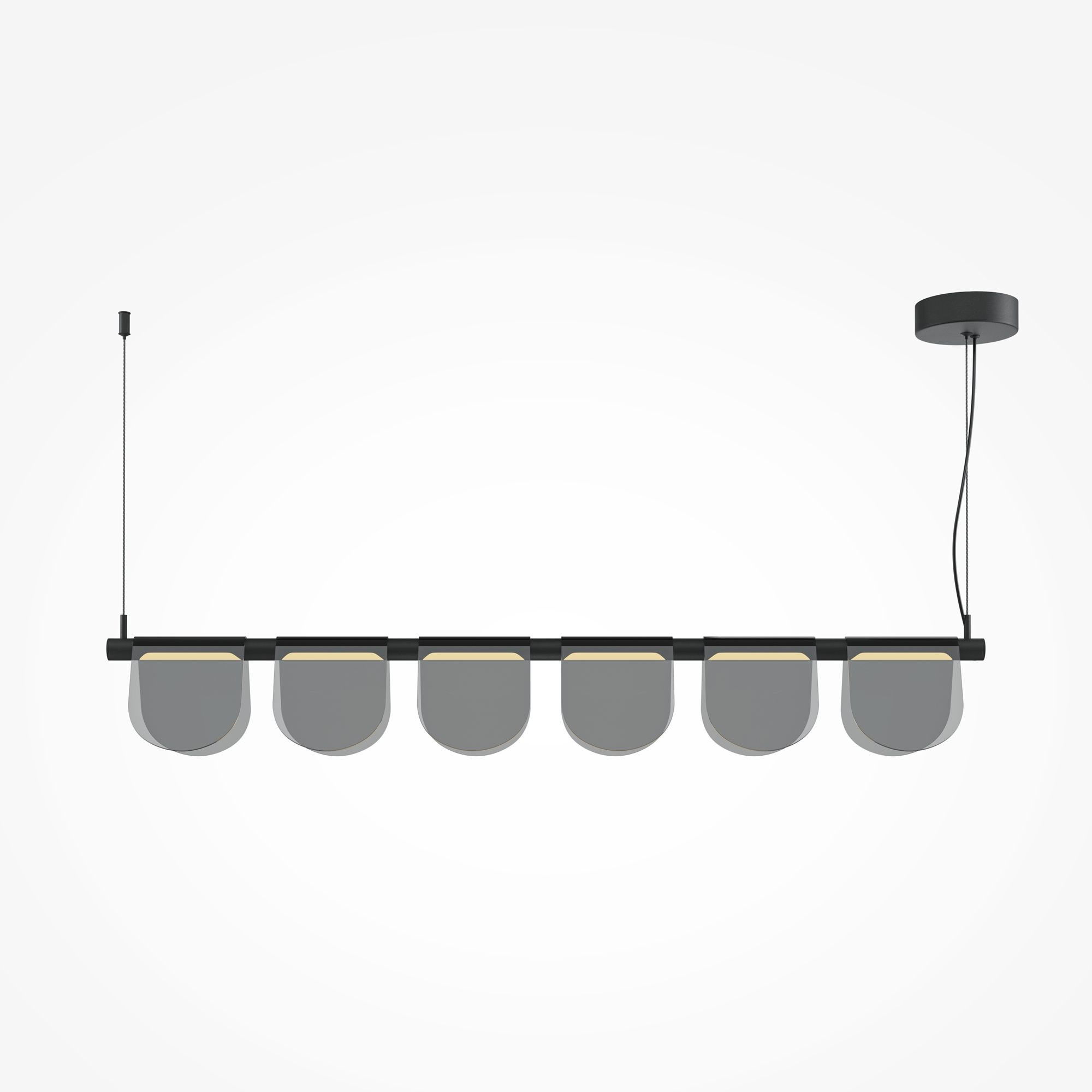Металлическая арматура черного цвета с антибликовым эффектом sandy. Акцентные плафоны-пластины выполнены из высококачественного тонированного стекла. Благодаря специальной технологии придания цвета стеклу в момент его производства, достигается высокий уровень прозрачности и равномерного окрашивания по всей поверхности плафона. LED-источник света, с температурой цвета 3000К, угол рассеивания 120 градусов, высокий световой поток. Регулируемая длина провода 3 метра – подходит для установки в помещениях с высокими потолками.