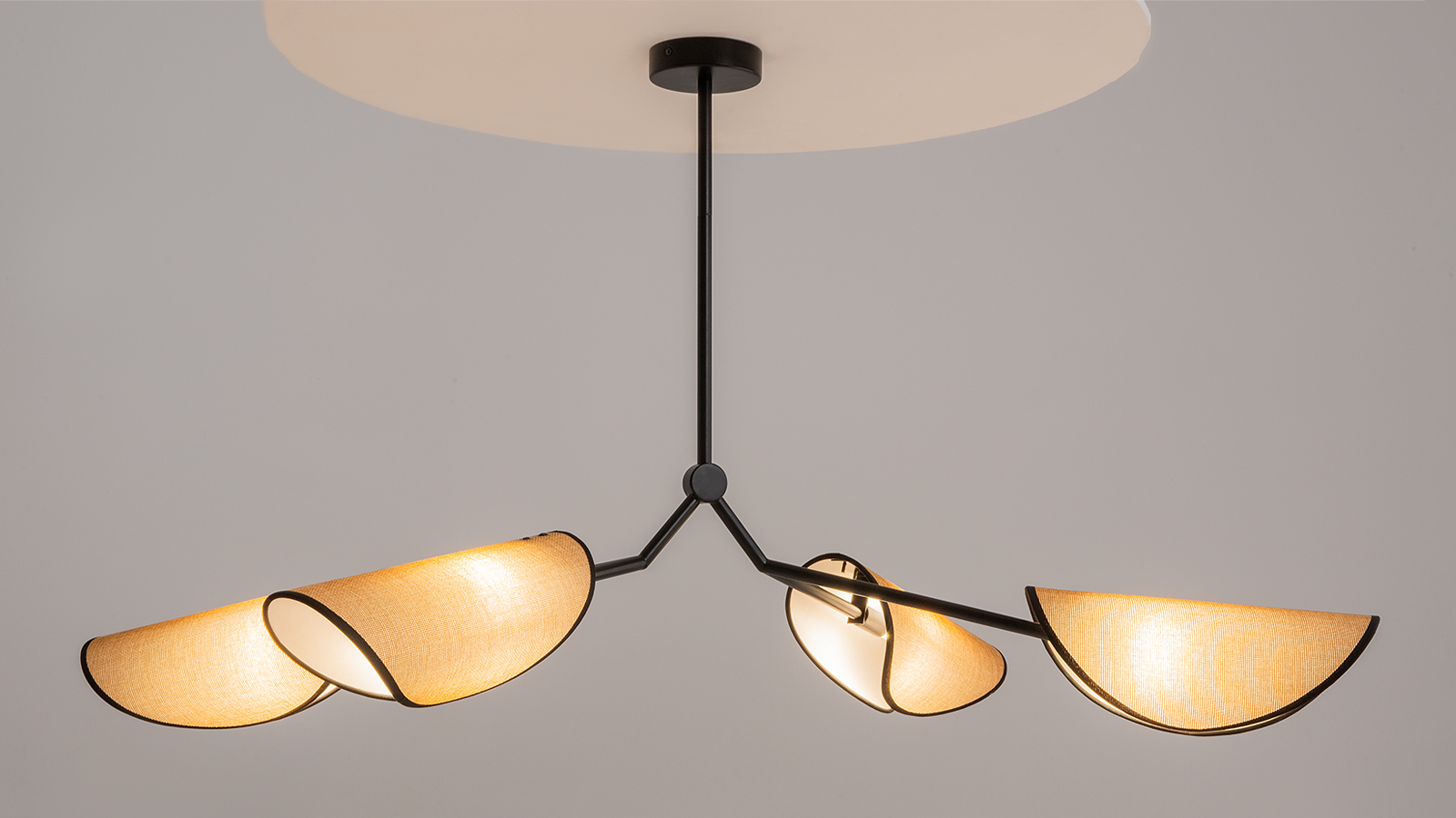 Люстра имеет размеры 532 мм х 648 мм, оснащена металлической ассиметричной арматурой черного цвета и четырьмя плафонами из натуральной бежевой рогожки с тканевой окантовкой черного цвета, напоминающими свернувшуюся листву тропических растений, которые равномерно распределяют свет по всей комнате, создавая уютную и тёплую атмосферу. Технической особенностью является регулировка по высоте, благодаря регулируемой разборной штанге вы сможете легко настроить высоту и направление света в соответствии с вашими предпочтениями и особенностями помещения. Осветительный прибор оснащен 4 источниками света с типом цоколя G9 и мощностью по 12 Вт каждая, при этом общая мощность устройства составляет 48 Вт, что обеспечивает комфортное и равномерное освещение на площади в 6 квадратных метров, создавая уютную атмосферу в вашем доме. Коллекция включает подвесные и настенные светильники. Создается атмосфера отдыха и путешествий к теплым морям и тропическим островам.
