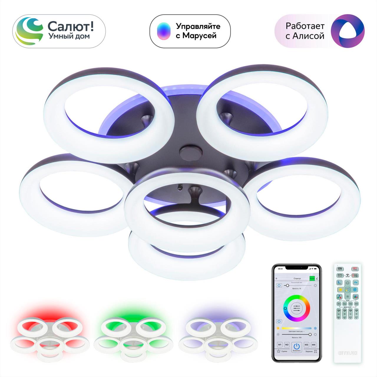Купить "Потолочная люстра с пультом ДУ Citilux Паркер Смарт CL225A165E"