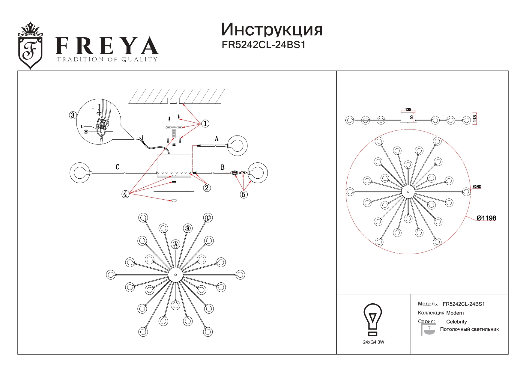 Данную модель FR5242CL-24BS1 с быстрой доставкой спешите купить по цене 18 255 ₽ в магазине 220svet.ru