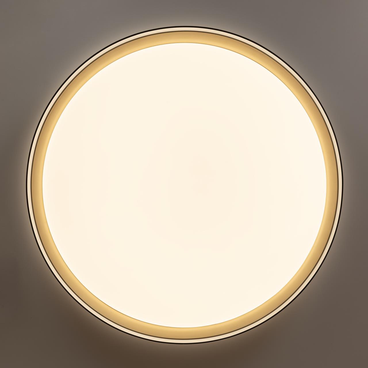 Светодиодный потолочный светильник от производителя Citilux относится к коллекции BOSS CL751451G с яркой цветной RGB подсветкой всего плафона. Основание металлическое, корпус из чёрного полимера с декоративным элементом в цвете матовое золото. Благодаря оригинальной конструкции, круглый светильник равномерно освещает помещение и дополнительно подсвечивает потолок, что придаёт пространству дополнительный объём.Мощность изделия 68Вт, световой поток 5800Лм. С помощью пульта дистанционного управления вы сможете плавно регулировать яркость 10% - 100%, менять цветовую температуру в диапазоне 3000K - 5500K, что позволяет настроить любые оттенки теплого, нейтрального или холодного света. Цветная подсветка RGB имеет несколько режимов работы, погружая ваше пространство в яркие и насыщенные тона. Функция таймера - отсроченного выключения и 4 настраиваемых режима памяти позволяют управлять светильником максимально комфортно. Заказывайте CL751451G по лучшей стоимости с быстрой доставкой. Производитель Citilux дает гарантию на свои товары . Данную модель CL751451G спешите купить в интернет-магазине 220svet.
