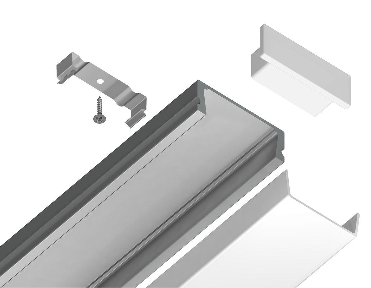 Алюминиевый накладной профиль для светодиодной ленты из коллекции ILLUMINATION. Данная модель следующего размера: 2000*15.5*6mm, внутри алюминиевого профиля можно установить светодиодную ленту шириной до 11mm. В алюминиевый профиль уже установлен рассеиватель белого матового цвета, изготовленный из светорассеивающего поликарбоната. Матовый рассеиватель придаст освещению мягкости и комфорта. Алюминиевые профили применяются как для декоративного освещения, так и для основного. В комплект к профилю прилагается 2 заглушки и 4 крепления. Данную модель GP1700AL спешите купить в интернет-магазине 220svet.
