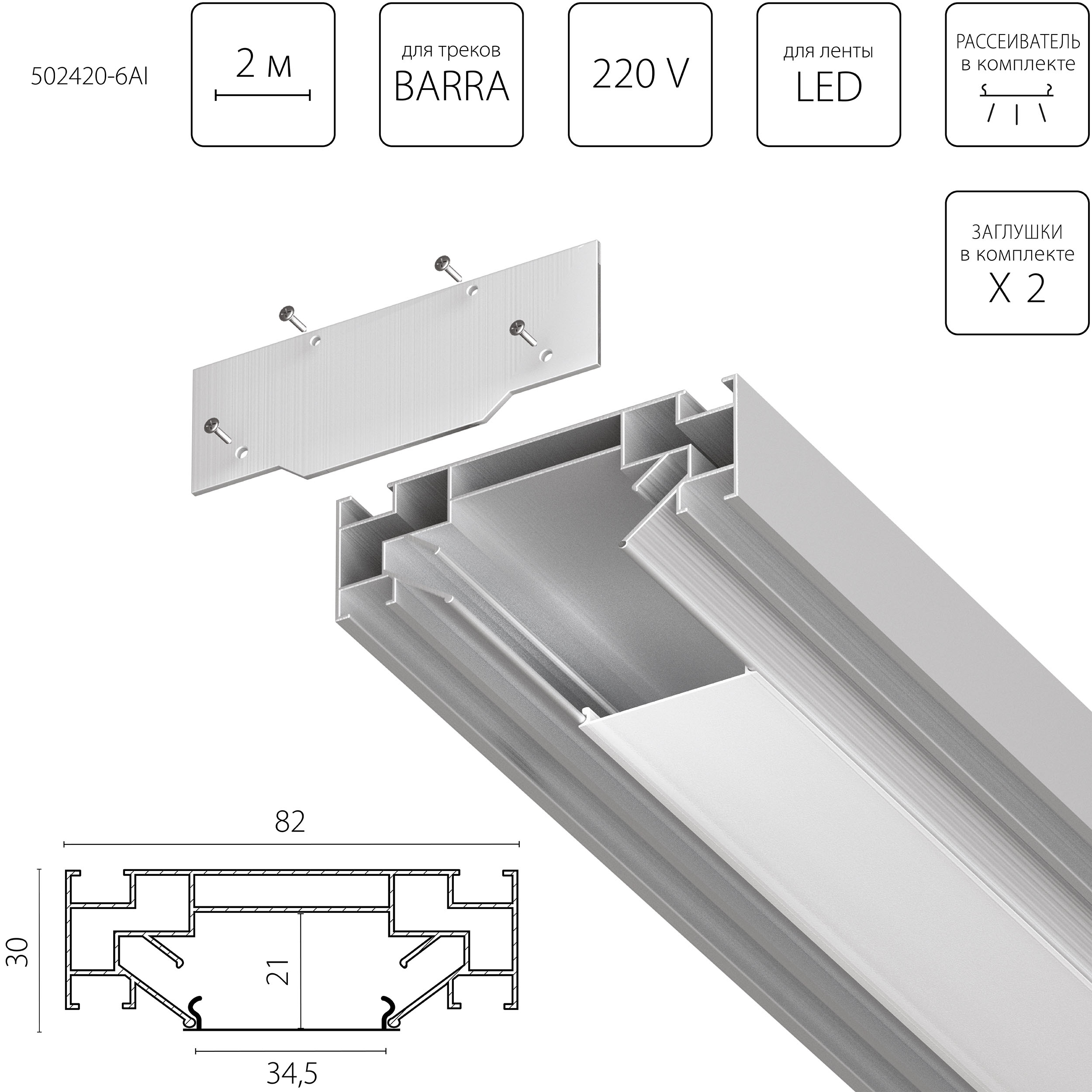 Профиль встраиваемый в натяжной потолок под LED ленту Lightstar Barra Base 502420-6AI во Владимире