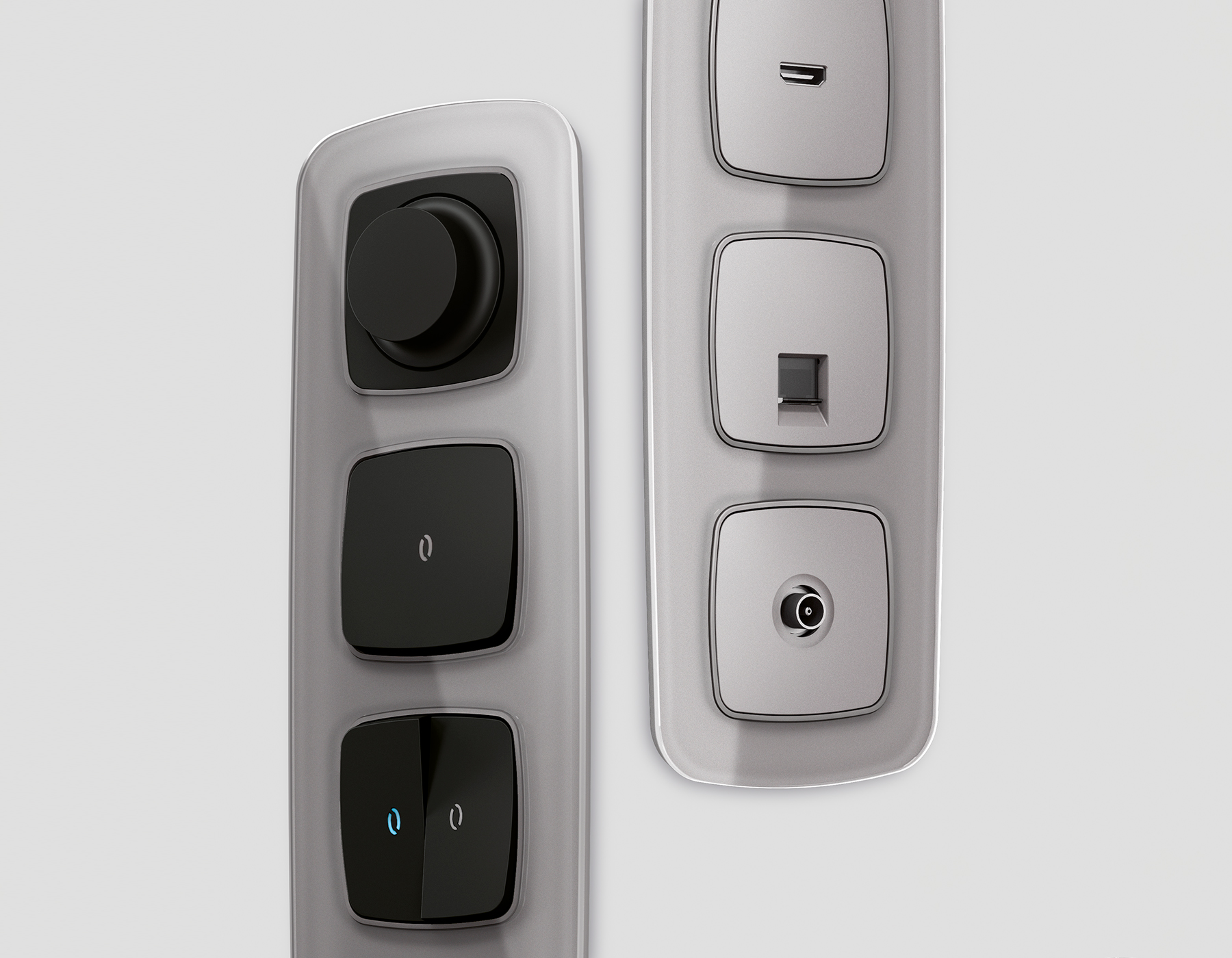 Многогранный ассортимент Ambrella Volt включает в себя механизмы, лицевые панели и рамки, а также комплекты, доступные в различных цветовых решениях. Продукция представлена в модульном исполнении, что позволяет гибко настраивать внешнийвид и функциональность. Вам будет легко заменить лицевую панель, рамку или механизм, найдя идеальное сочетание цветов.