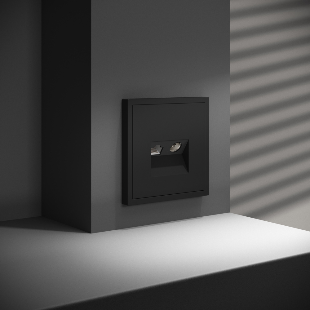 Купить "Розетка телевизионная встраиваемая TV+RJ45 кат. 6 Voltum S70 VLS060708 (черный матовый)"