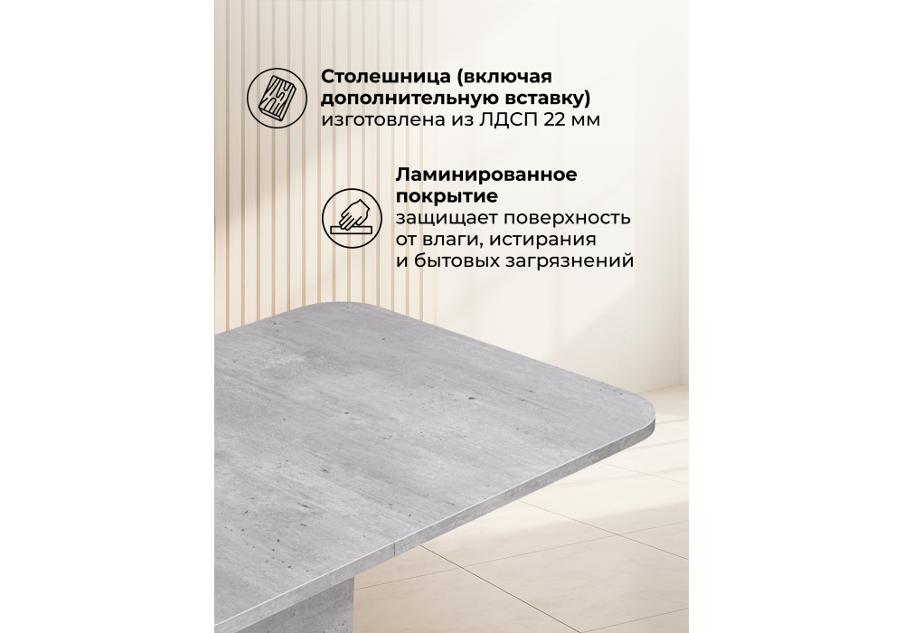 Толщина столешницы: 2,2 см. Материал каркаса - ЛДСП; Ширина - 75; Высота - 76; Длина стола в разложенном виде - 152; Длина - 120;