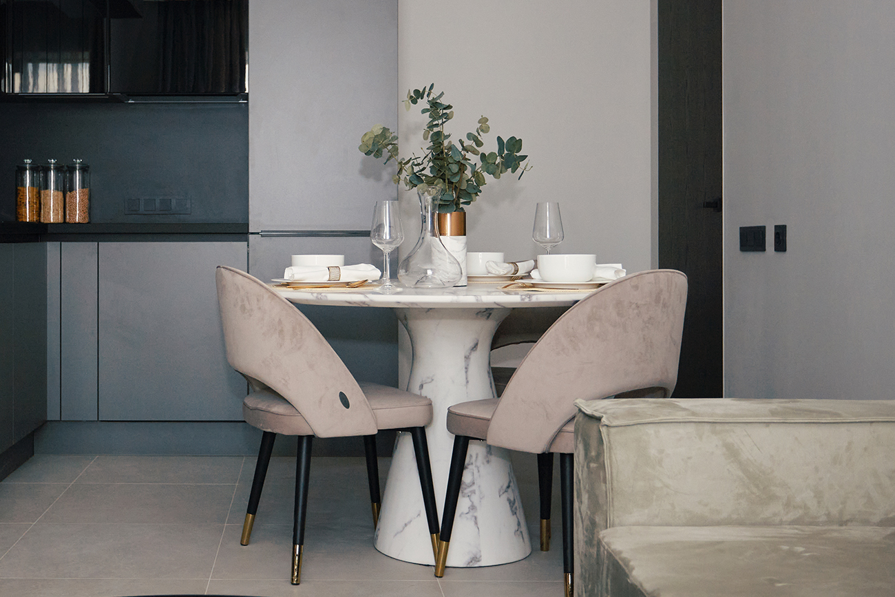 Этот дизайнерский обеденный стол переосмысляет классическую роскошь через призму современных технологий. Глянцевая столешница с искусным рисунком под мрамор транслирует благородную эстетику камня, привнося в интерьер свет и визуальный объем. Использование МДФ высокого качества делает конструкцию легкой и мобильной, избавляя пространство от тяжеловесности, присущей натуральному массиву, при этом сохраняя безупречный внешний вид изделия. Футуристичное основание из прочного стеклопластика обеспечивает столу исключительную устойчивость и долговечность. Такое сочетание материалов — глянца и плавных архитектурных форм — делает стол под мрамор идеальным выбором для столовой в стиле софт-минимализм или неоклассика. Это эстетичное решение для тех, кто ценит визуальный эффект натуральных фактур в сочетании с практичностью и легкостью современных композитных материалов. Толщина столешницы - 30 мм.