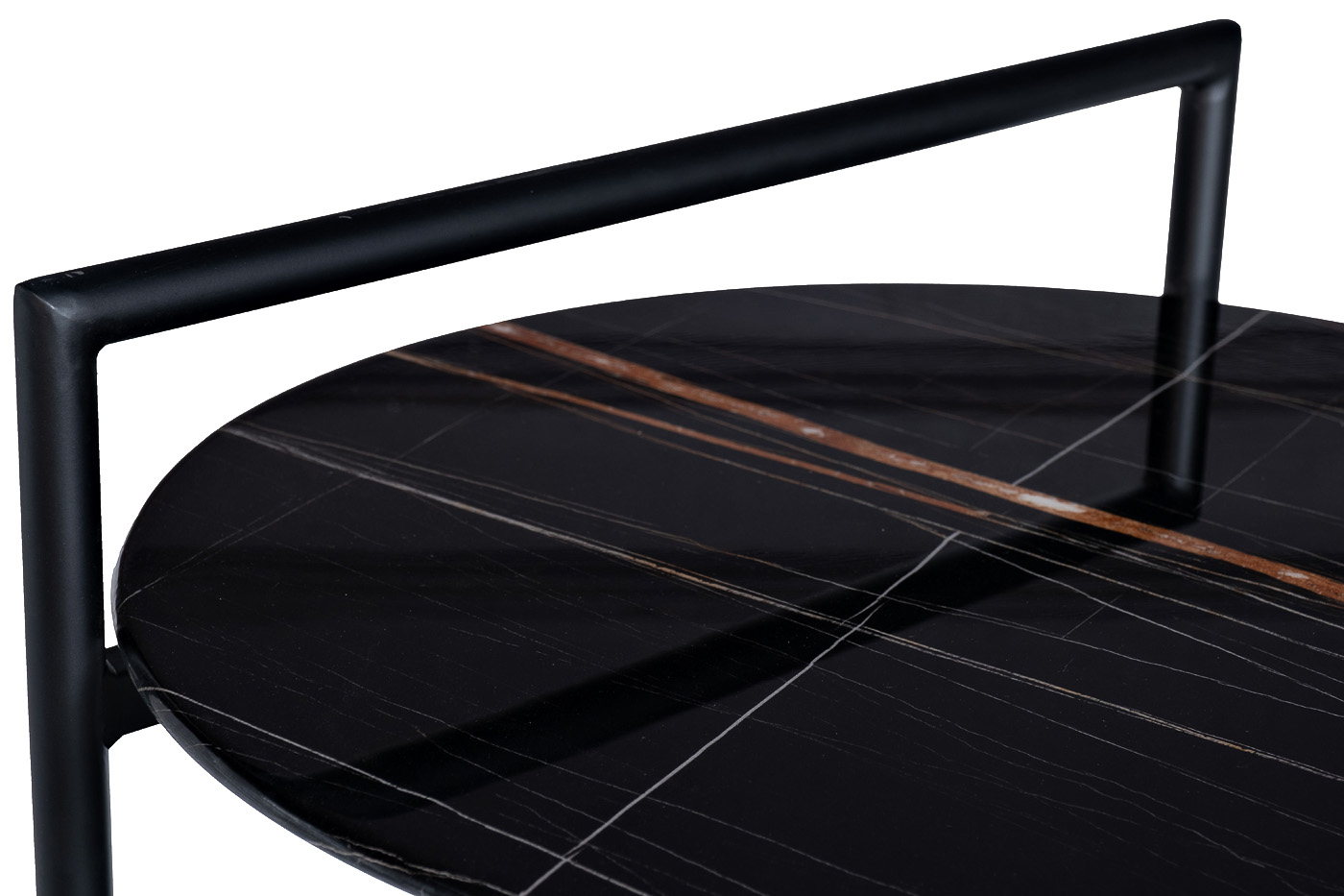 Круглый журнальный столик просто незаменим в любом интерьере. Столешница из прочного закаленного стекла искусно имитирует темный мрамор с яркими цветными прожилками. С такой красивой мебелью оживает любой интерьер. Удобная ручка на столешнице позволяет легко передвинуть стол в нужное место. Изящные золотые наконечники на ножках хорошо сочетаются с темными столешницами, придавая столу особый блеск и красоту. Широкий журнальный столик с полкой – удобный и функциональный предмет мебели, который прекрасно подойдет для гостиной, столовой, спальни или кабинета. Толщина столешниц 8мм. Сочетается с журнальным столом 30B-871 BL из данной серии.