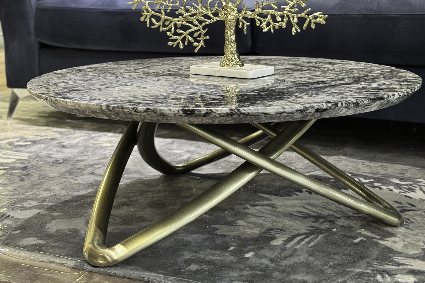 Мебель из мрамора ценилась во все времена. Не исключением станут столики, изготовленные из природного мрамора на устойчивом трехопорном основании из стали благородного и сдержанного золотистого оттенка. Столешница вырезана из цельной плиты и отполирована, без каких-либо дополнительных покрытий. Узор каждого столика неповторим и уникален.