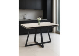 Керамический стол раскладной Woodville Мэриан 120(180)х80 carmen light grey / черный 625719