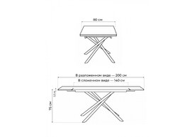 Керамический стол раскладной Woodville Памелла 140(200)х80 carmen light grey / черный 625824