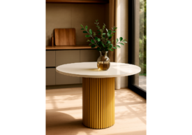 Стол деревянный 160х90 Woodville Хьюго О белая шагрень пленка / золотые ноги 620408