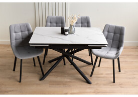 Керамический стол раскладной Woodville Маунт белый мрамор / черный кварц / черный 621199