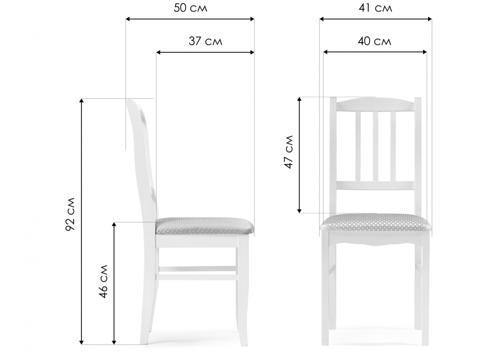Материал каркаса - массив дерева; Материал сиденья - ткань; Материал обивки - ткань; Цвет ножек - орех; Ширина - 41; Глубина - 50; Высота - 92; Ширина сиденья - 40; Глубина сиденья - 37; Высота сиденья - 46;