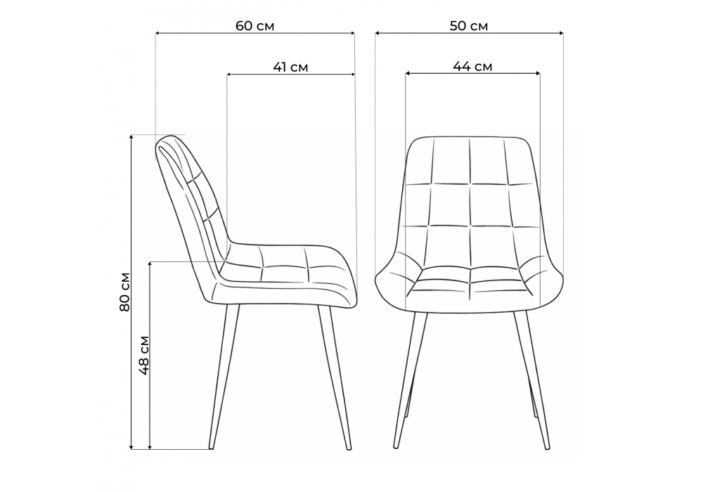 Материал каркаса - металл; Материал сиденья - велюр; Материал обивки - велюр; Цвет ножек - белый; Ширина - 50; Глубина - 60; Высота - 80; Ширина сиденья - 44; Глубина сиденья - 41; Высота сиденья - 48;