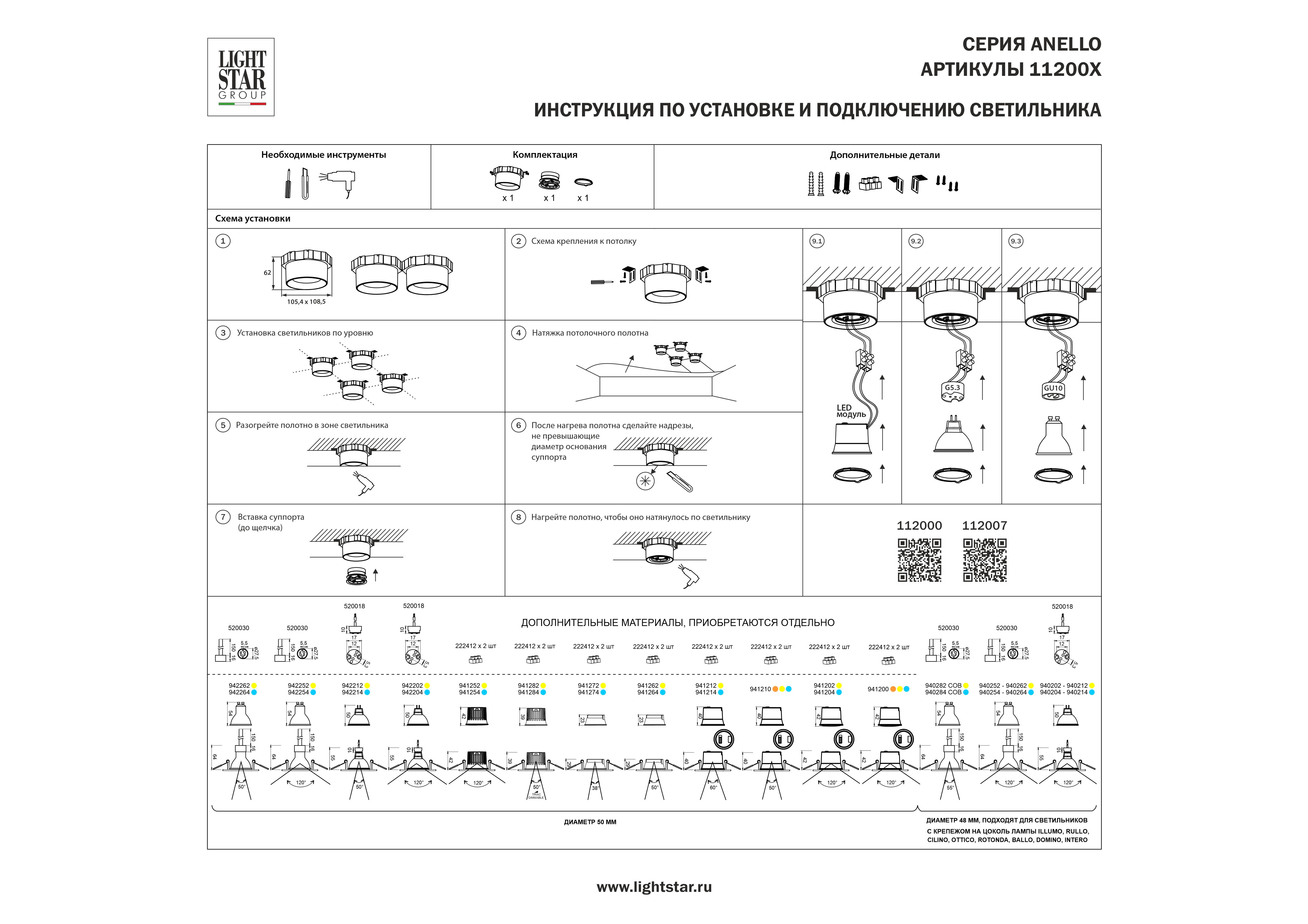 Светильник в натяжной потолок Anello Lightstar 112007 во Владимире
