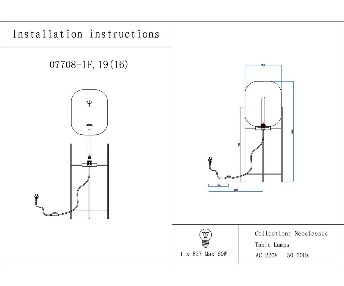 Торшер Лорейн черный/серый d38 h100 E27 1*40W комплект состоит из 2х коробок