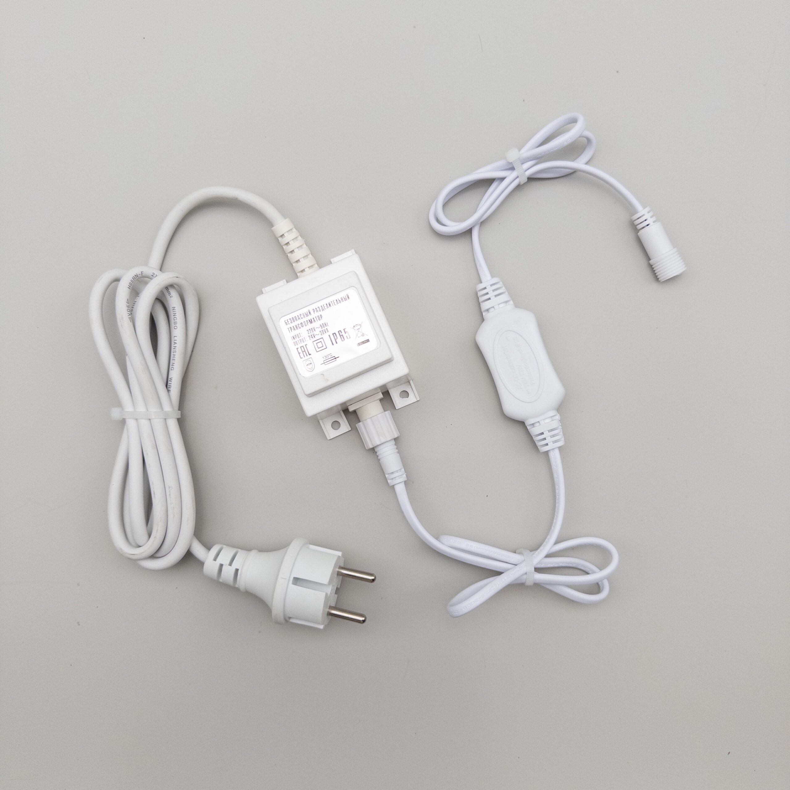 Купить "Трансформатор 30W с Выпрямителем для Нитей 24В, до 600 LED, Провод Белый Каучук, IP65 LTC PTR30-3A-W"