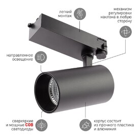 Трековый светодиодный светильник ЭРА TR5-30 COB BK Б0049055
