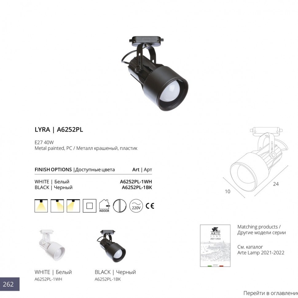 Купить "Трековый однофазный светильник Arte Lamp A6252PL-1BK"