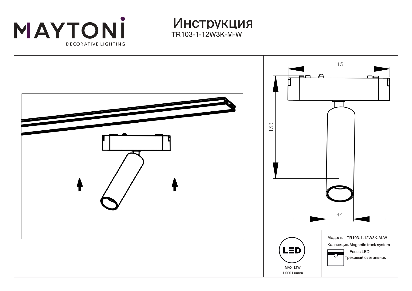 Купить "Трековый магнитный светодиодный светильник Maytoni Focus LED TR103-1-12W3K-M-W"