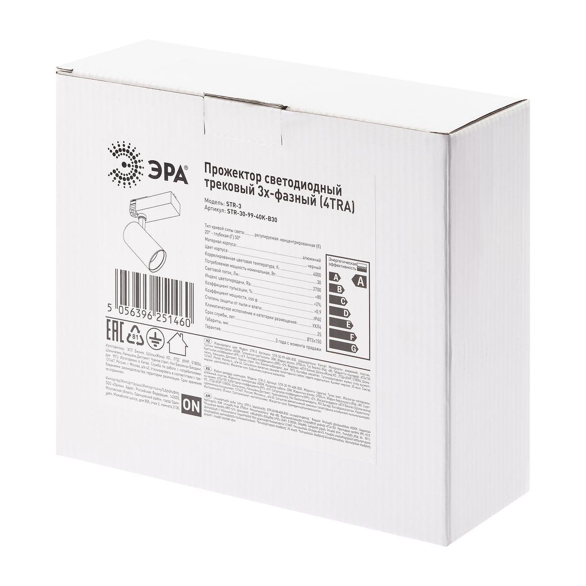 Трековый светодиодный светильник ЭРА STR-30-99-40K-B30 Б0049791 во Владимире