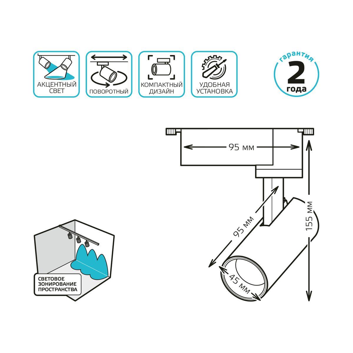 Трековый светодиодный светильник Gauss Track Light Led TR077 во Владимире