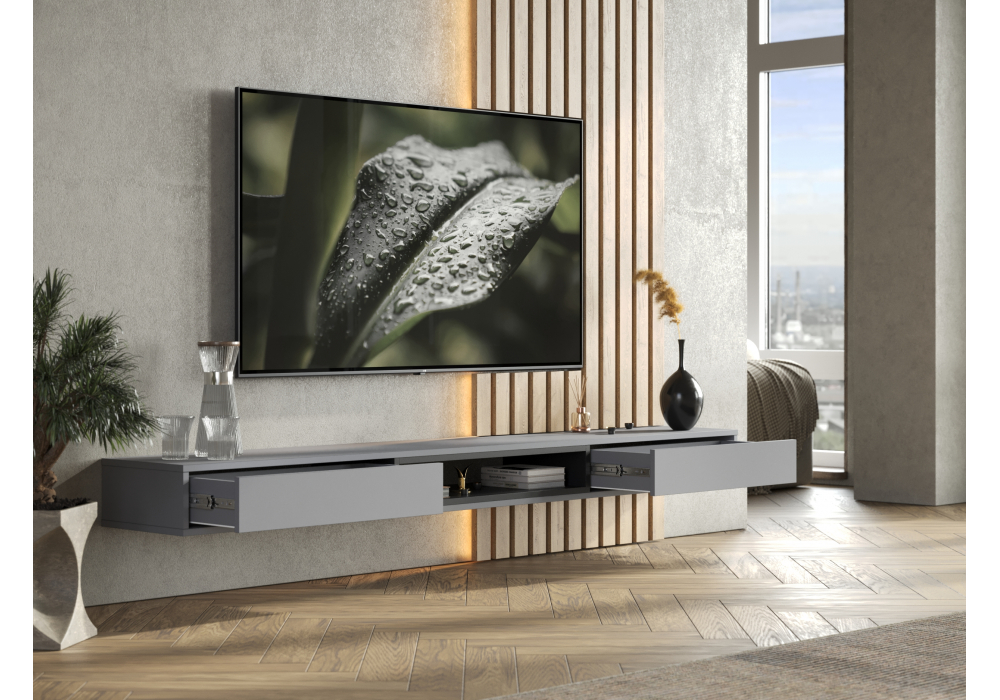 Купить "ТВ-тумба Woodville Делора 2,0 м шиншилла серая / черный 674727"