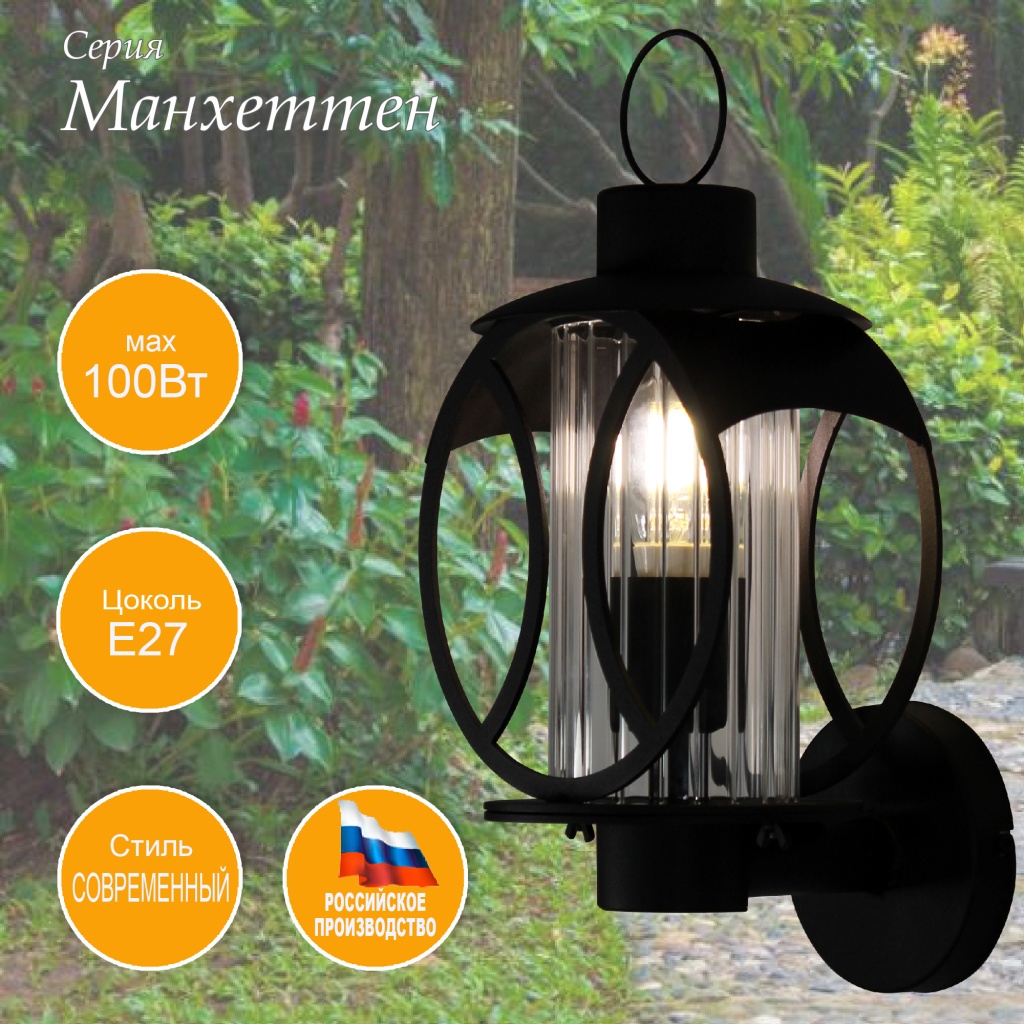 Уличный настенный светильник чёрный Манхеттен Элетех 1030480547 во Владимире