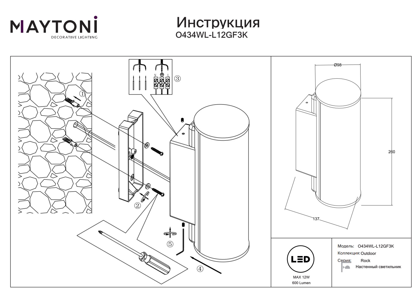 Уличный настенный LED светильник Rock O434WL-L12GF3K идеально подходит для установки на фасадах зданий, заборах, беседках и других объектах. Он станет стильным акцентом в вашем экстерьере и обеспечит качественное освещение территории.