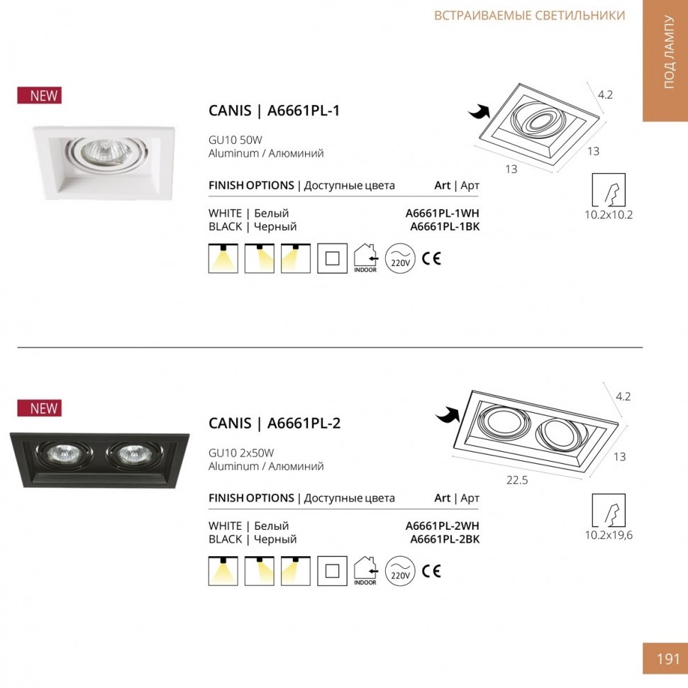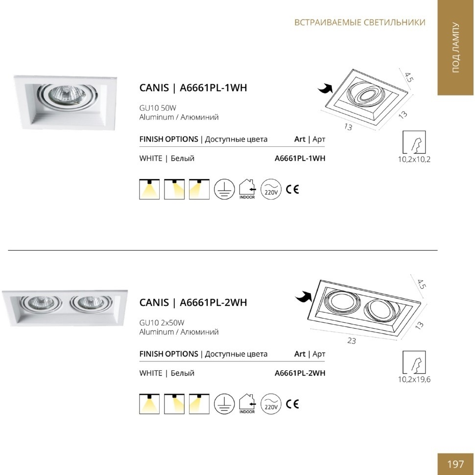 Встраиваемый светильник Arte Lamp A6661PL-2WH во Владимире