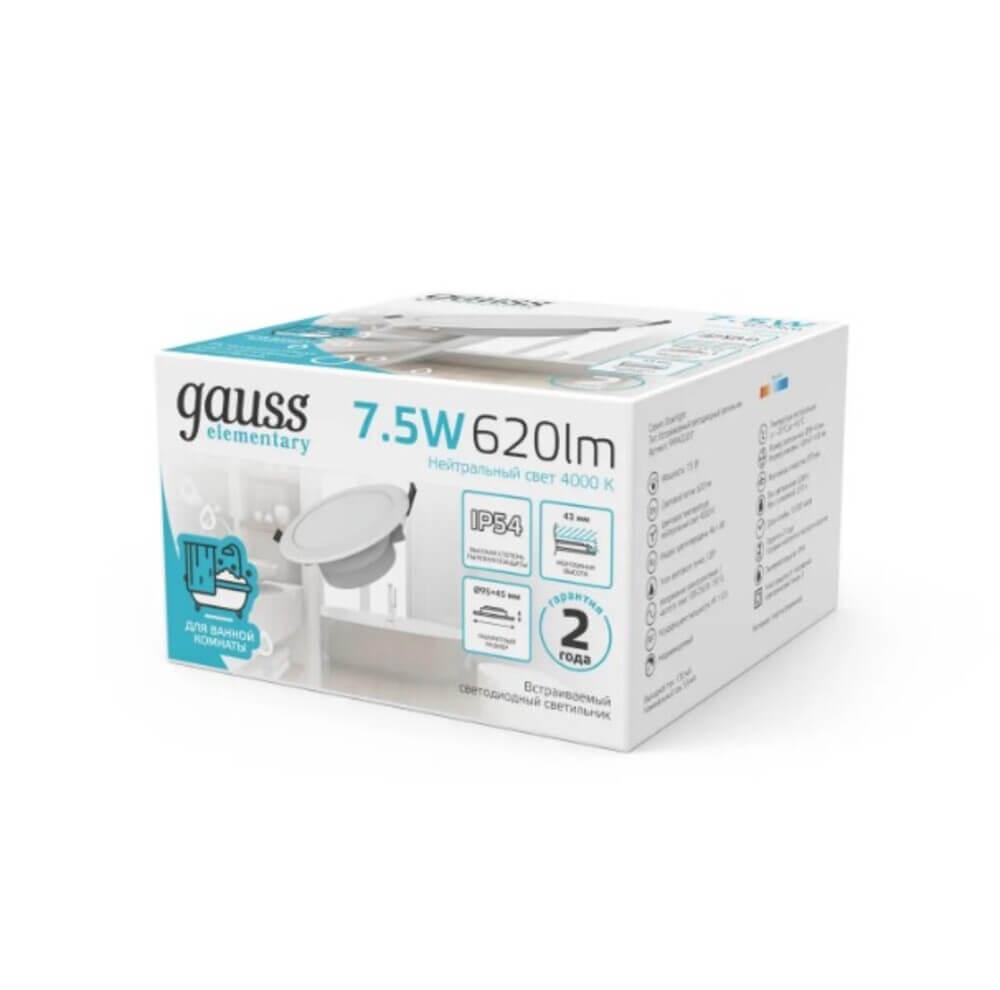 Встраиваемый светодиодный светильник Gauss Elementary Downlight 999420207 во Владимире