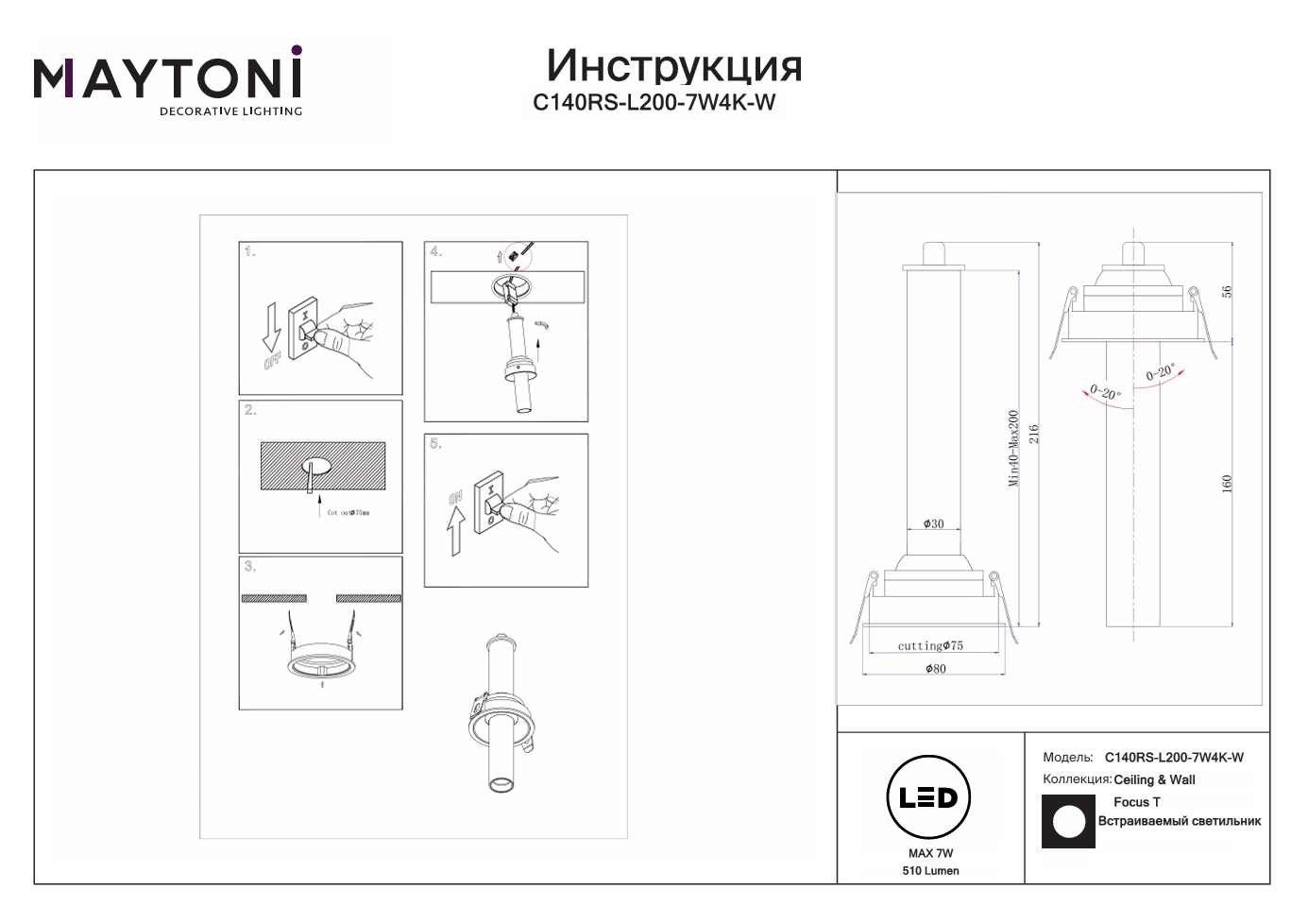 Все характеристики C140RS-L200-7W4K-W