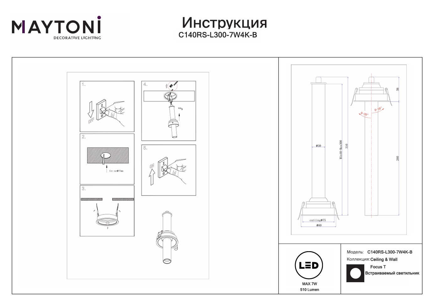 Все характеристики C140RS-L300-7W4K-B