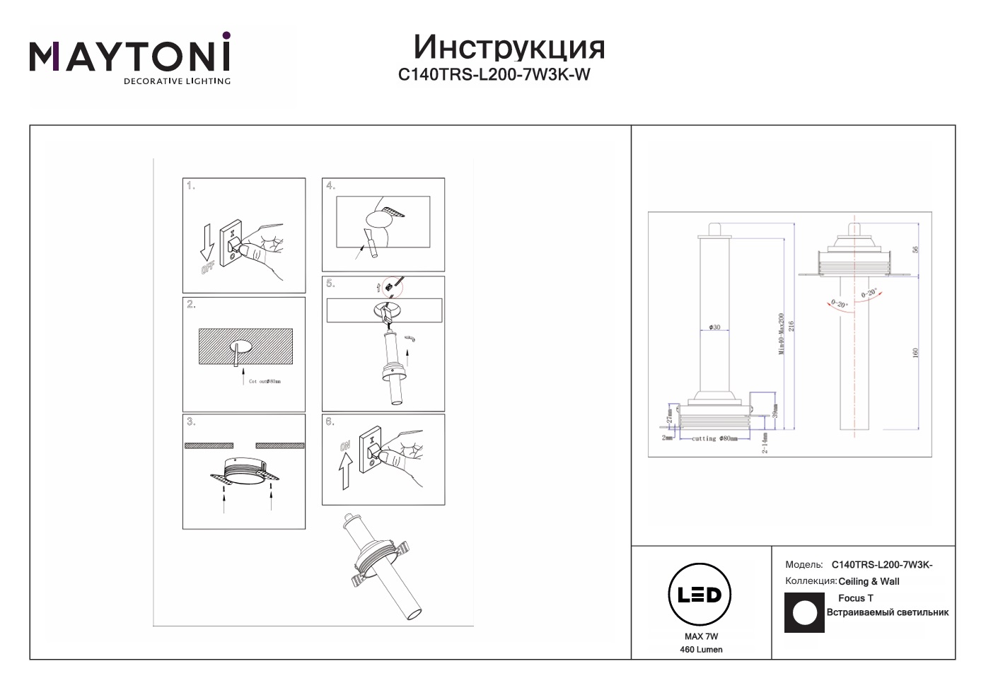 Все характеристики C140TRS-L200-7W3K-W