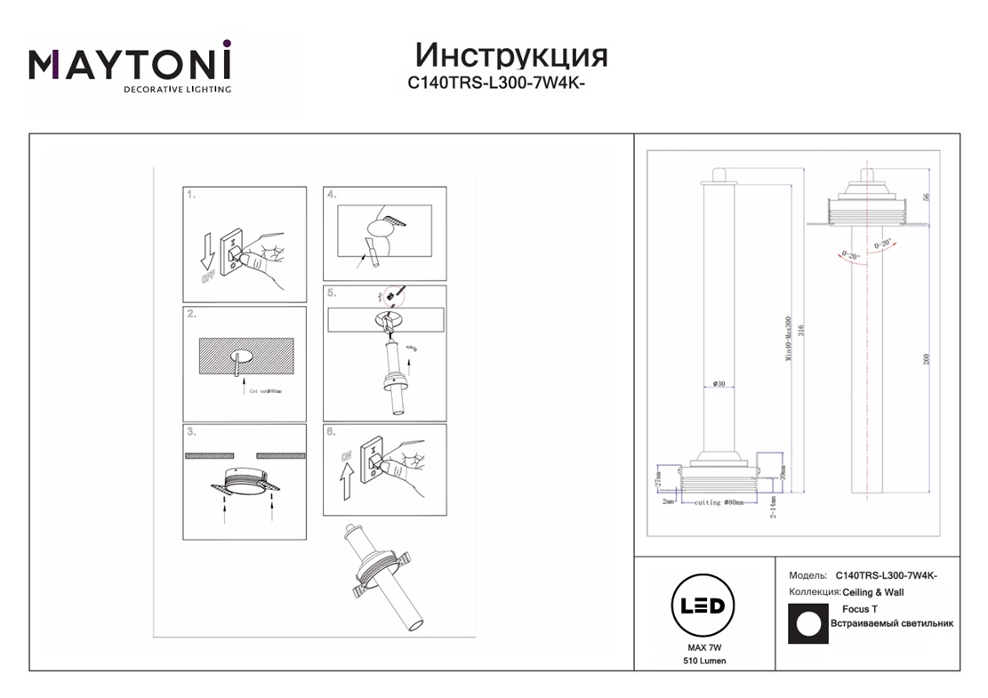 Все характеристики C140TRS-L300-7W4K-BBS