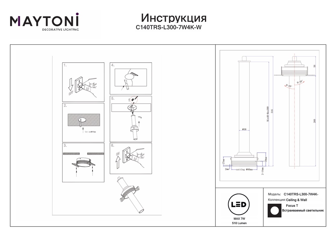 Все характеристики C140TRS-L300-7W4K-W