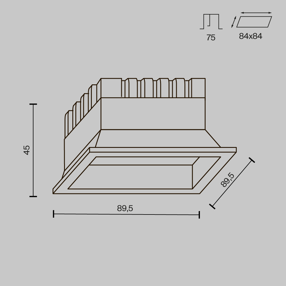 - Диаметр врезного отверстия: 80*80 мм