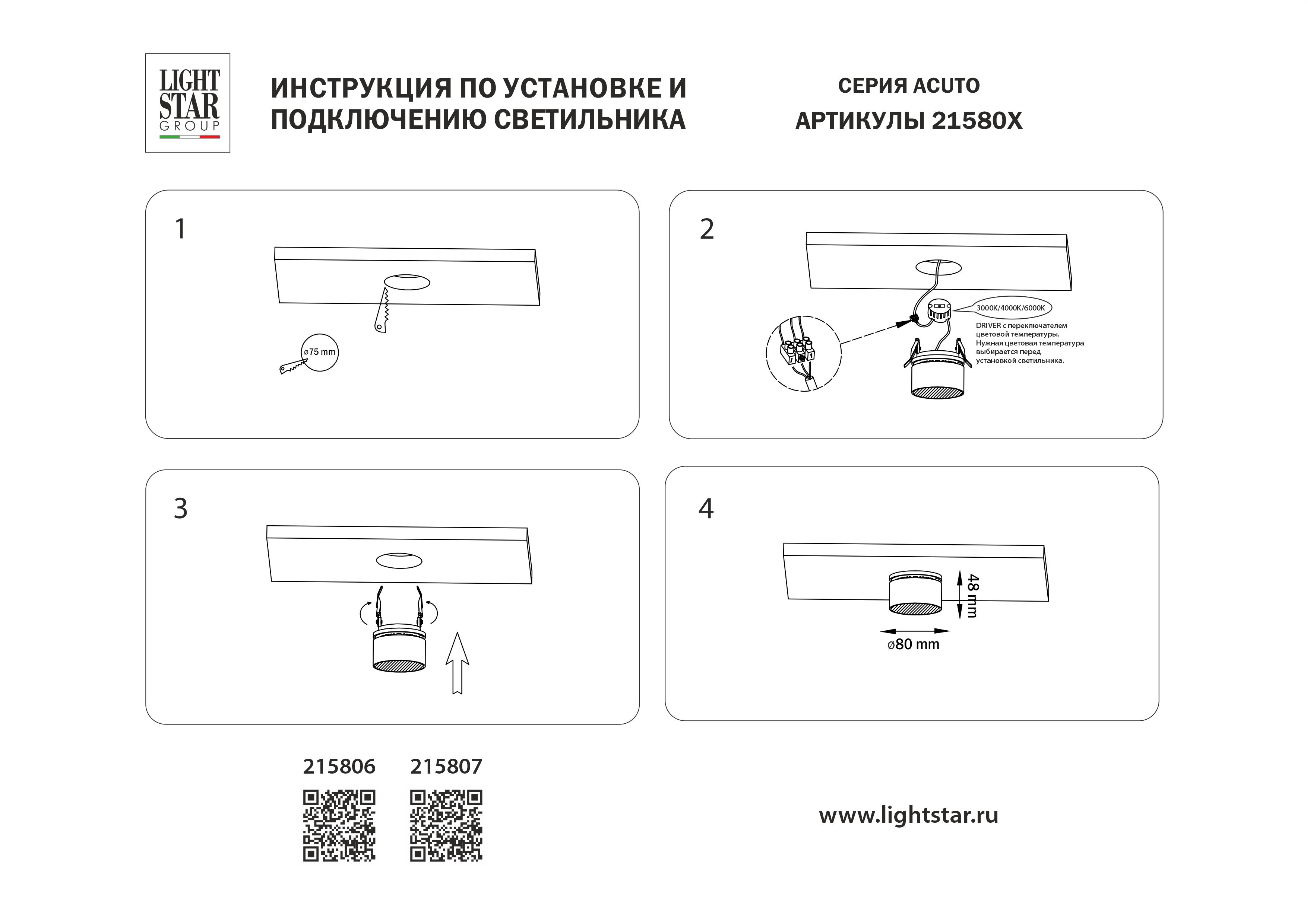 Купить "Встраиваемый светодиодный светильник с переключателем света Lightstar Acuto 215806"